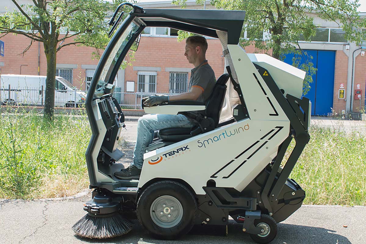 Die Aufsitz-Kehrmaschine SmartWind von Tenax ist ein leistungsstarkes und umweltfreundliches Reinigungsgerät, das sich für den Einsatz in städtischen Umgebungen und auf großen Flächen eignet. Ausgestattet mit einem vollelektrischen Antrieb, arbeitet sie emissionsfrei und leise.